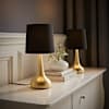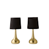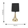 This pair of Teardrop touch table lamps in brushed gold give any space an air of elegance to level up your décor. Touch-sensitive lamps are perfect in the bedroom. No more fumbling around in the dark trying to find a switch, just reach out, and touch the lamp! The black shades perfectly complement both modern and traditional décor alike.