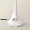 - A teardrop metal base in a chrome finish with a navy tapered shade. Dimmable for your choice of cool, natural or warm light.