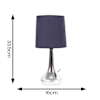 - A pair of dimmable touch table lamps with a metal base and fabric shade. Features a 150cm cable with UK mains plug.