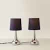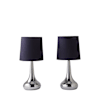 The perfect pair. Two teardrop touch table lamps in chrome with navy shades. Perfect for bedsides or side tables.