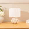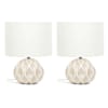 Ceramic bases with a natural inspired texture 3D effect, topped off with fabric shades.