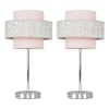 Weaver Pair of Touch Table Lamp with Blush Pink And Grey Herringbone Shades