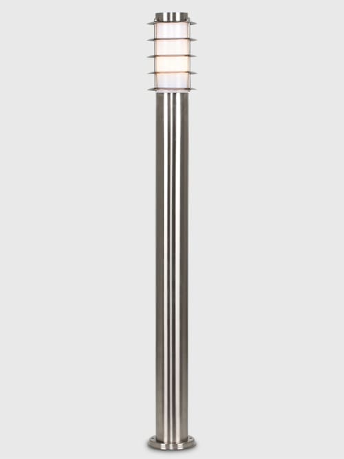 1 metre in height, produced with metal and acrylic frosted bulb cover, the 'Wharf' brushed chrome IP44 bollard garden lights are ideal for the outdoors