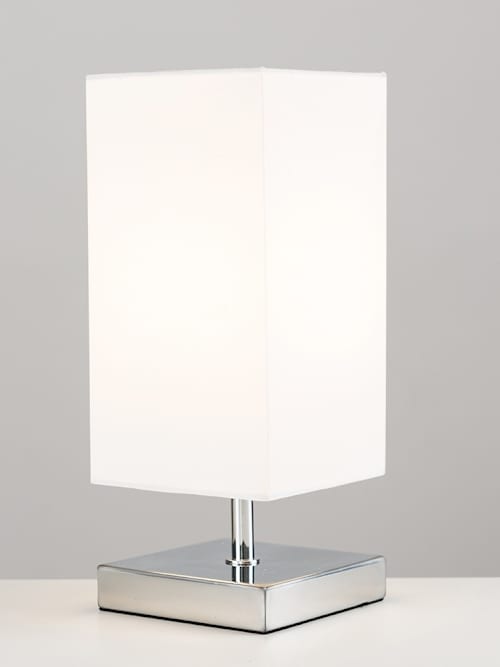 Pair of Value Essentials Yuko Chrome Touch Table Lamps with White Shades