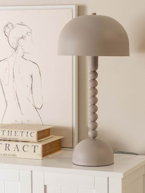 Simple stacked sphere metal stem base with monochromatic dome shade.