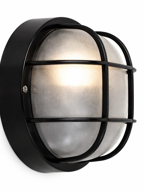 Pendle IP44 Round Bulkhead Wall Light in WhiteThis simple outdoor light is a great addition to any outdoor wall spaceWith its clear glass, the glow of the bulb creates an ambient atmosphereThis product is Class II
