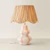 - A ceramic table lamp base with a scalloped, straw shade. Featuring a rocker switch on a 150cm green cable.