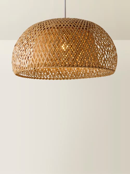 Release your inner zen and add natural warmth to your home with the contemporary Perugia Bamboo dome pendant shade. Hung from the ceiling and designed to be the centre piece for any living space, the natural bamboo woven construction will cast subtle light patterns around the room. The Boho inspired natural palette would complement a modern or Scandi décor style. The Perugia is an easy fit lamp shade so can be hung around an existing lamp holder. Our shades come with a 4cm opening for E27 lamp holders, and we’ve added a handy reducer ring that brings it down to 3cm so it’s E14 friendly too.