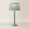 Bobbles Powder Blue Bobbin Table Lamp with Leaf Print Pleated Shade
