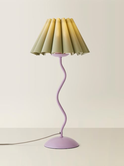 Wiggle your way to stylish lighting with this pastel purple table lamp! Featuring a playful wiggle design and a sage green pleated tapered shade, it brings a quirky yet chic touch to any room. The colour-matched fabric cable adds a harmonious feel, tying the whole look together. This lamp isn't just about function; it adds a bit of wiggle room to your decor. Whether lighting up a living room or adding charm to a bedside table, it's the perfect way to brighten your space with personality!