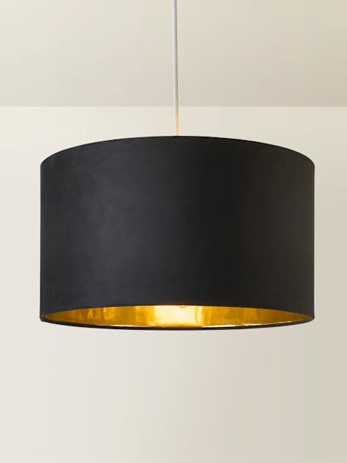 Reni, set, go! Meet the style solution you’ve been looking for, the large Reni drum lampshade. Finished in a sumptuous black velvet, this pendant shade also has a metallic gold interior that adds glamour to any room. Reni isn’t just a pretty face, it’s versatile too! With this large shade, you can pair it with any ceiling pendant, floor lamp, or table lamp, making it a multipurpose marvel. Whether you’re revamping your living room, bedroom, or office, Reni will elevate your home décor game! Our shades come with a 4cm opening for E27 lamp holders, and we’ve added a handy reducer ring that brings it down to 3cm so it’s E14 friendly too.