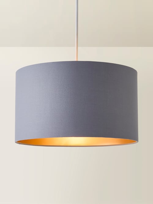 Reni, set, go! Meet the style solution you’ve been looking for, the large Reni drum lampshade. Finished in a chic grey fabric, this pendant shade also has a metallic copper interior that adds glamour to any room. Reni isn’t just a pretty face, it’s versatile too! With this large shade, you can pair it with any ceiling pendant, floor lamp, or table lamp, making it a multipurpose marvel. Whether you’re revamping your living room, bedroom, or office, Reni will elevate your home décor game! Our shades come with a 4cm opening for E27 lamp holders, and we’ve added a handy reducer ring that brings it down to 3cm so it’s E14 friendly too.