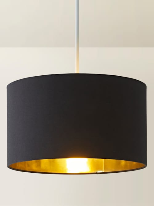 Reni, set, go! Meet the style solution you’ve been looking for, the large Reni drum lampshade. Finished in a chic black fabric, this pendant shade also has a metallic gold interior that adds glamour to any room. Reni isn’t just a pretty face, it’s versatile too! With this large shade, you can pair it with any ceiling pendant, floor lamp, or table lamp, making it a multipurpose marvel. Whether you’re revamping your living room, bedroom, or office, Reni will elevate your home décor game! Our shades come with a 4cm opening for E27 lamp holders, and we’ve added a handy reducer ring that brings it down to 3cm so it’s E14 friendly too.