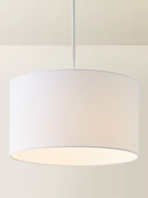 Reni, set, go! Meet the style solution you’ve been looking for, the medium Reni drum lampshade. Finished in a classic white fabric, this pendant shade adds a little chic to any room. Reni isn’t just a pretty face, it’s versatile too! With this medium shade, you can pair it with any ceiling pendant or table lamp, making it a multipurpose marvel. Whether you’re revamping your living room, bedroom, or office, Reni will elevate your home décor game! Our shades come with a 4cm opening for E27 lamp holders, and we’ve added a handy reducer ring that brings it down to 3cm so it’s E14 friendly too.