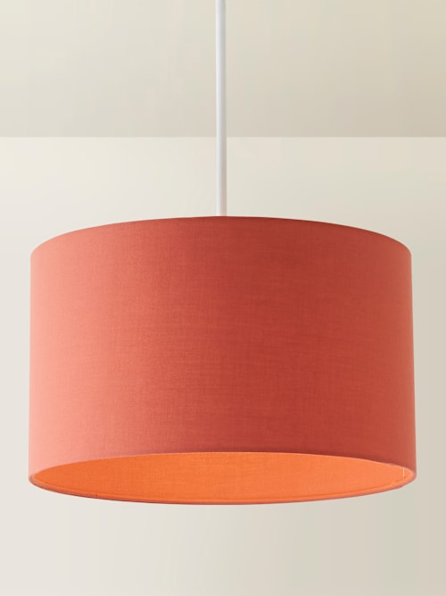Reni, set, go! Meet the style solution you’ve been looking for, the medium Reni drum lampshade. Finished in an earthy rust colour fabric, this pendant shade adds a little chic to any room. Reni isn’t just a pretty face, it’s versatile too! With this medium shade, you can pair it with any ceiling pendant or table lamp, making it a multipurpose marvel. Whether you’re revamping your living room, bedroom, or office, Reni will elevate your home décor game! Our shades come with a 4cm opening for E27 lamp holders, and we’ve added a handy reducer ring that brings it down to 3cm so it’s E14 friendly too.