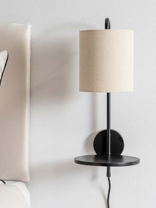 Brighten up your space with this chic wall light featuring a natural colour drum shade and an integrated shelf – the perfect solution for rooms with limited space! Ideal as a bedside light where there's no room for a bedside table, it's a handy spot for your phone, book, or mug of tea. The soft, cosy glow from the shade adds charm to any room, while the practical shelf keeps your essentials within easy reach. Who says you can't have style and functionality in small spaces?