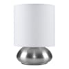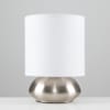 Satin Nickel Touch Table Lamp with White Drum Shade
