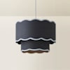 The Sloane two-tier scalloped shade is all about standout design with a twist. Featuring two scalloped navy tiers and a bold contrasting trim, this shade delivers retro-inspired charm with a modern edge. Ideal for anyone who loves colour and character, Sloane transforms your ceiling into a chic focal point. Perfect for living rooms, bedrooms, or dining spaces that deserve a little extra personality.