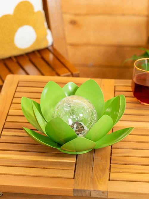 Add a pop of colour and charm to your garden with this solar-powered metal waterlily light. Available in four colours, black, white, green, and yellow, this little beauty blooms by day (well, in the sun!) then lights up after dark from the cool white LED inside the crackled globe. No wires, no hassle, just pure, eco-friendly glow! It's the perfect way to brighten up any space and impress your neighbours. Choose your colour and let your garden shine with a spot of floral magic!