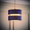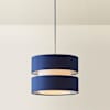 The Sophia small navy easy fit shade is a new, exciting take on a classic fabric shade design. With a cylindrical shade at the core, with two stacked shades on the outer.