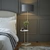 - The design is modern and smart. A stylish floor lamp with a built-in side table. Handy as can be, providing a warm glow and a place to pop a cup of tea or glass of wine.