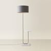 Tavel Brushed Chrome Floor Lamp with Table and Large Grey Velvet Shade