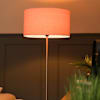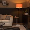 You could welcome the Tavel brushed chrome floor lamp with table into any modern space and top it off with a pop of colour with the large Reni shade.