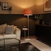 You could welcome the Tavel Brushed Gold floor lamp into any modern space and top it off with a pop of texture with the large velvet Reni shade in blush.