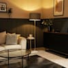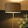 You could welcome the Tavel Brushed Gold floor lamp into any modern space and top it off with a pop of texture with the large velvet Reni shade in grey.