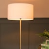 You could welcome the Tavel brushed gold floor lamp with table into any modern space and top it off with a pop of colour with the large Reni shade.