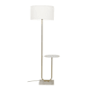 Tavel Brushed Gold Floor Lamp with Table with Large Shade in White