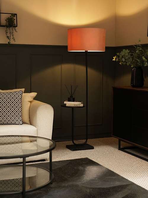 A floor lamp and a side table? It cant be! Oh, but it is. You could welcome the tavel matte black floor lamp into any modern space and top it off with a pop of texture with the large velvet reni shade in blush. The design is modern and smart. A stylish floor lamp with a built-in side table. Handy as can be, providing a warm glow and a place to pop a cup of tea or glass of wine. The minimalistic base is perfect for adding a timeless, modern touch to your decor without overpowering it. The lamp base has a height of 131cm and diameter of 4cm, the side table has a diameter of 3cm. Petite, but plentiful. Requires one 6w led es/e27 bulb. It also features a large velvet reni shade in blush (with a
