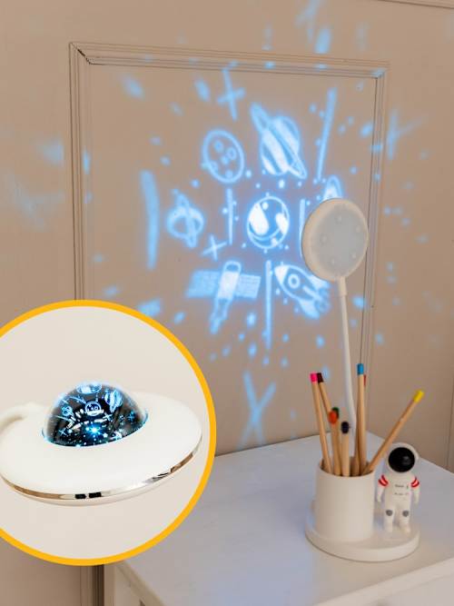 Tom's a great motivator for study time! He'll hold your pens whilst projecting the sky and showing you what's possible if you work hard. A pen pot, projector, desk light and figurine. Featuring a button switch and sold with a 3cm USB C cable. A plastic penpot with a fun friend, Tom the Spaceman and a desk lamp and projector on a flexible swan neck. Perfect for bedside tables or desk spaces in a child's bedroom. But we wouldn't tell on a grown up who wanted a little motivator on their desk. This table lamp is an integrated LED design which means you don't have to worry about finding its perfect bulb.