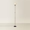 This modern floor lamp is a great addition to any living room space or bedroom