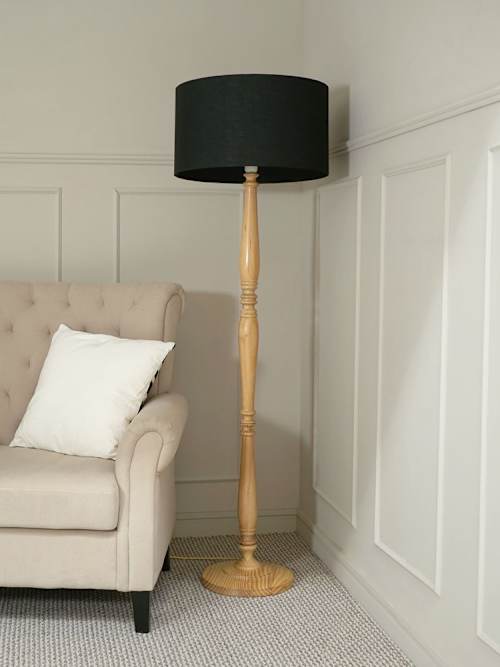 The Victoria candle stick floor lamp in light wood is the perfect choice for any home looking for a contemporary or rustic refresh. A freestanding, wooden floor lamp base perfectly paired with a black drum shade. A versatile piece well suited throughout the home. Requires 1x E27 bulb, max 1W. Personalise the lighting experience with your choice of cool, natural, warm or smart bulb. Doesn't require installation, just plug into any UK socket and get glowing! Comes with a 18cm cable for hard to reach plugs.