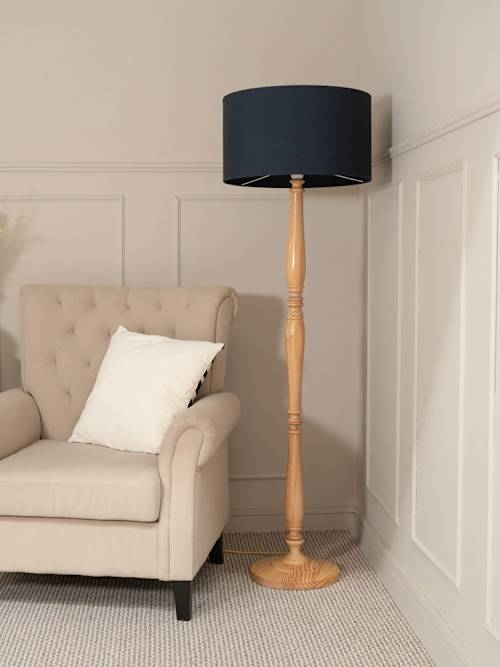 The Victoria candle stick floor lamp in light wood is the perfect choice for any home looking for a contemporary or rustic refresh. A freestanding, wooden floor lamp base perfectly paired with a charcoal drum shade. A versatile piece well suited throughout the home. Requires 1x E27 bulb, max 1W. Personalise the lighting experience with your choice of cool, natural, warm or smart bulb. Doesn't require installation, just plug into any UK socket and get glowing! Comes with a 18cm cable for hard to reach plugs.