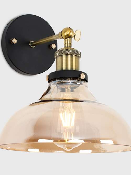 It's hard not to fall in love with the Wallace amber glass wall light! This vintage-inspired industrial sconce light combines sleek amber hued glass with edgy, industrial features for a stylish, modern update. Perfect for creating a welcoming hallway, displaying either side of your bed, or making a statement in your dining room. Pair with a trendy filament bulb and explore the rest of the Wallace range for the full look! Requires 1 x 4W ES/E27 bulb or LED equivalent.