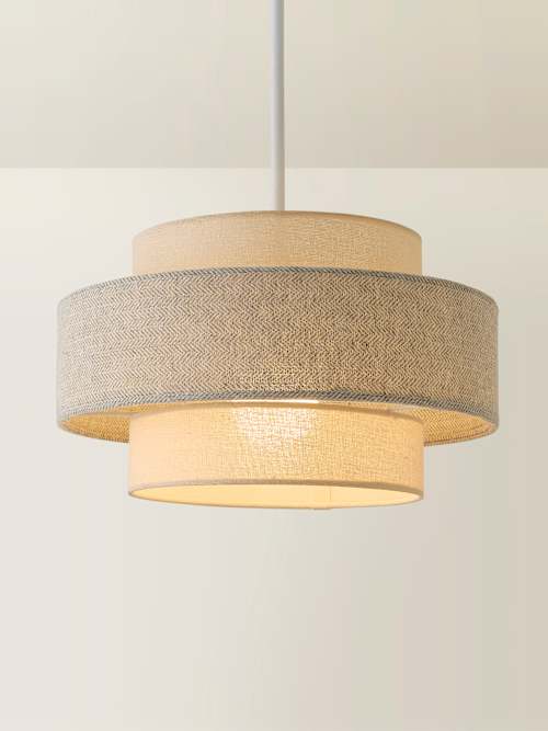 Weaver Cream and Grey Herringbone Tiered Pendant Ceiling Shade