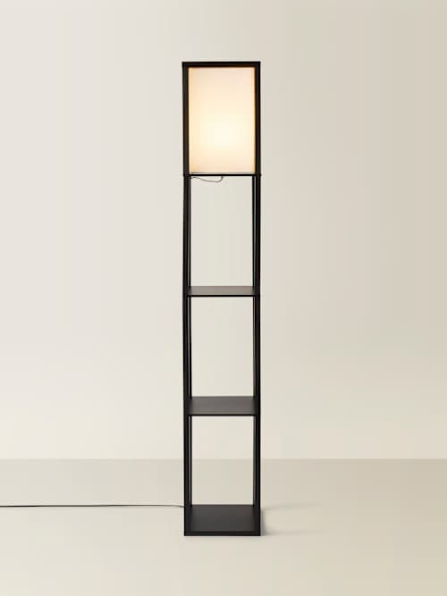 Struttura Black Shelving Floor Lamp with Fabric Shade