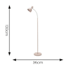 - A blush painted metal floor lamp with an adjustable neck and round wooden base. Features a floor switch and a 180cm cable.